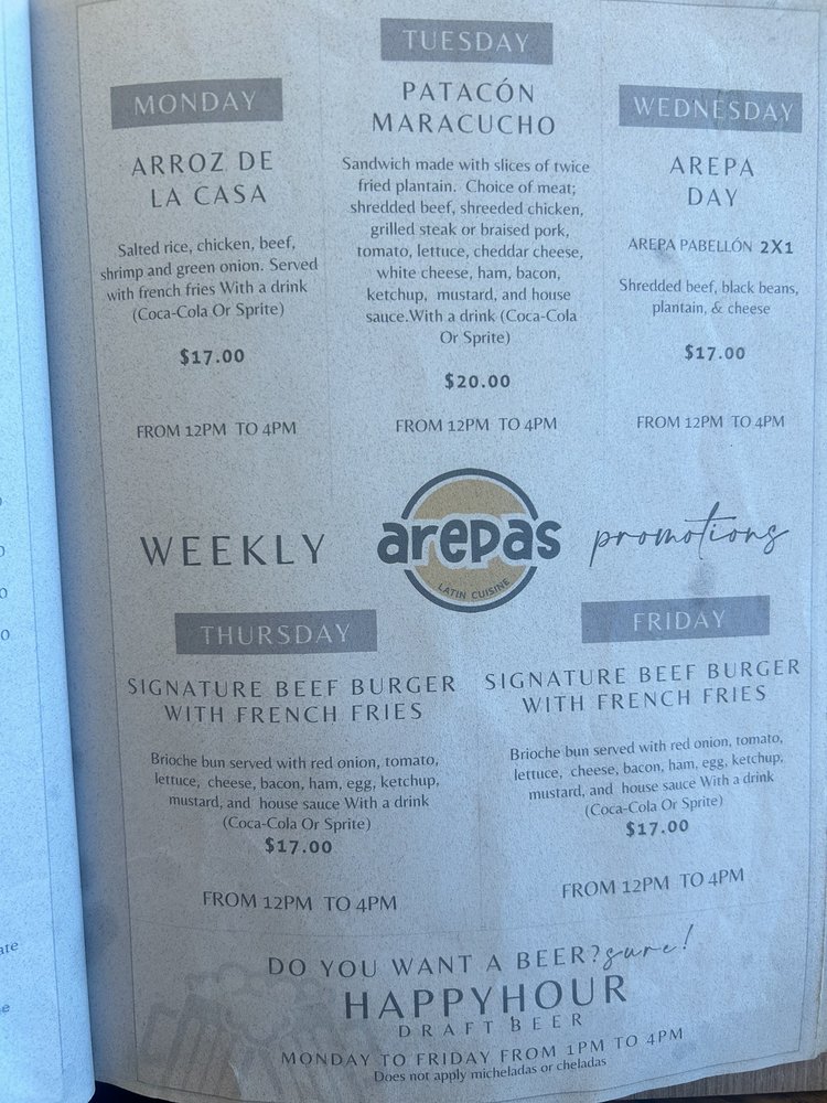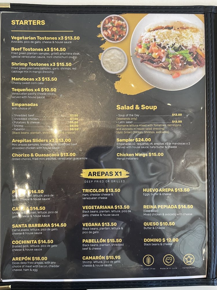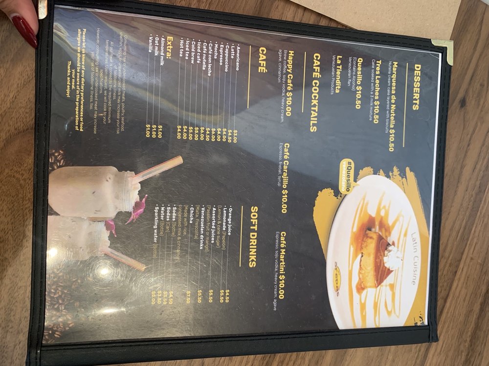 The ambiance is warm and welcoming, often filled with lively chatter and the sounds of live music. With options for outdoor seating and a full bar, it’s a perfect spot for gatherings with family and friends. The attentive service enhances the experience, as noted by delighted patrons. Whether you're indulging in their delicious cachapa or savoring a delicious espresso martini, every bite at Arepas Latin Cuisine guarantees culinary joy.